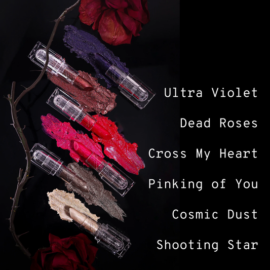 Collection inspired by the fading beauty of luxurious rose flowers. Includes two eyeshadow palettes, a highlighter and three new shades of Dream Lip Sparkle balms: Dead Roses, Cosmic Dust, and Shooting Star.