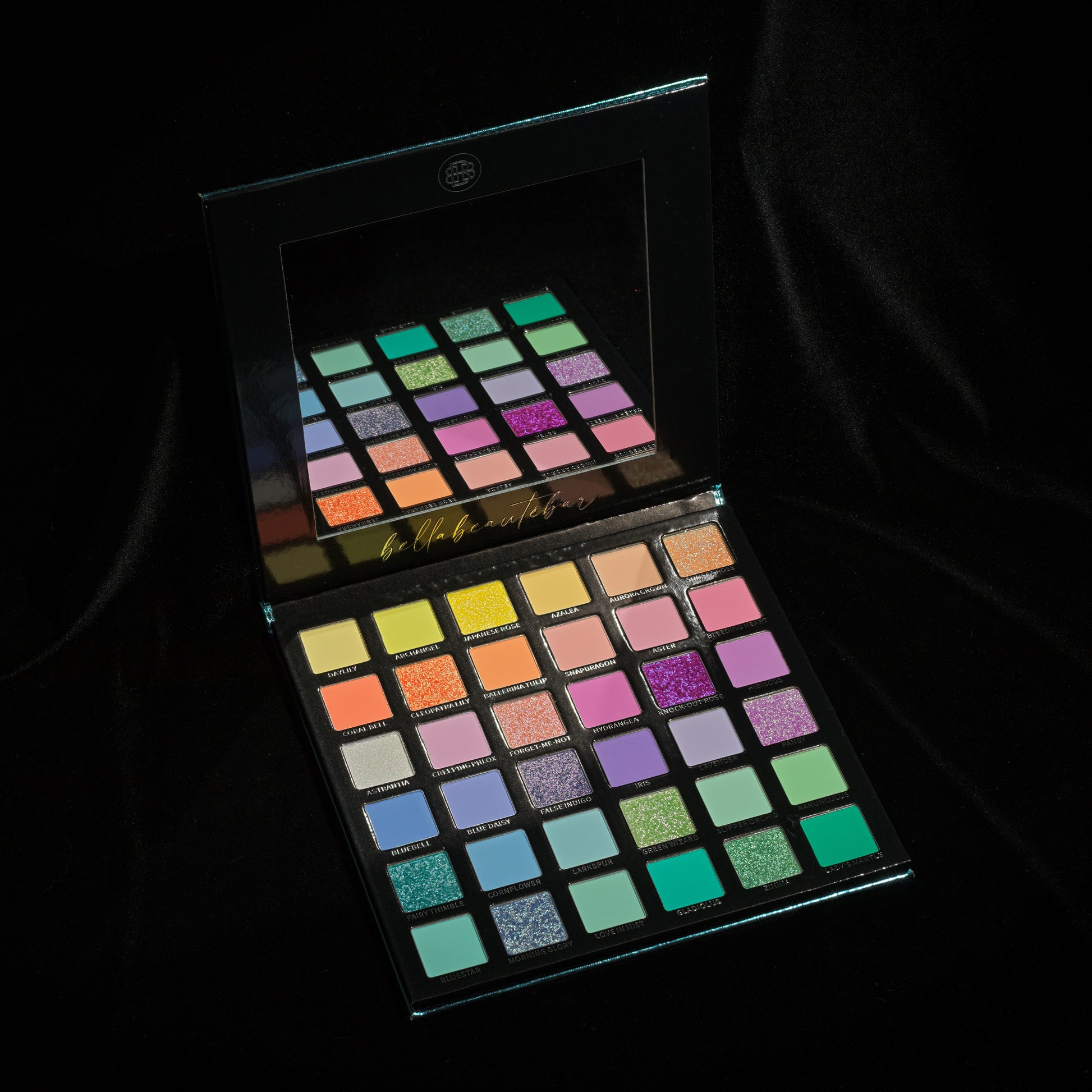 A 36-shade pastel colour featuring 24 pigmented, creamy, blendable mattes, 11 unique duochromes, and a unique multichrome shimmer.