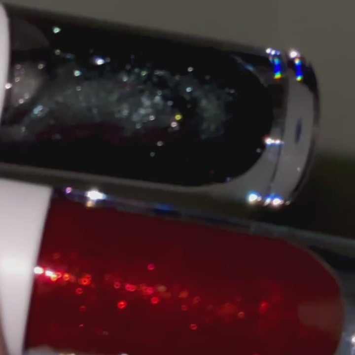 - F Bomb: Sheer cool red with red shimmer flecks that make the lips dazzle.