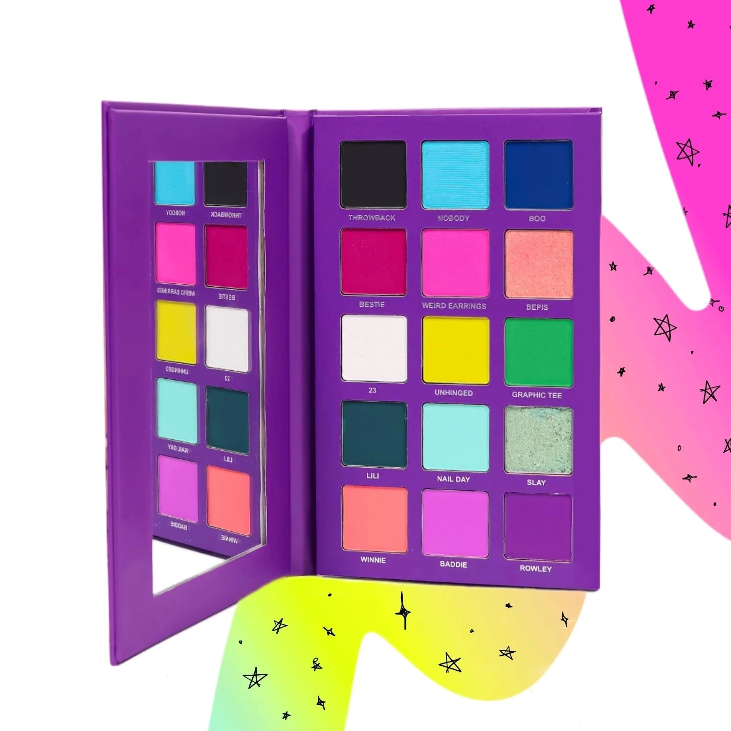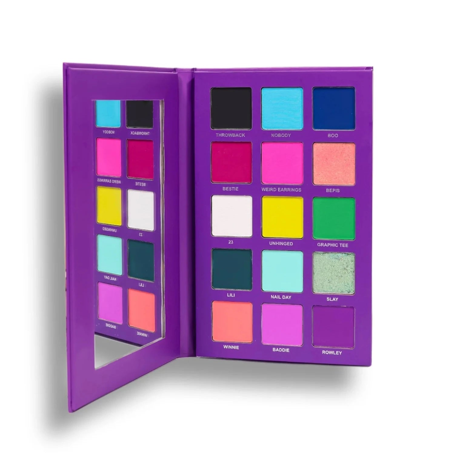 EYESHADOW (SLAY, BOO, GRAPHIC TEE, THROWBACK, 23): TALC, MICA, SILICA, CAPRYLIC/CAPRIC TRIGLYCERIDE, DIMETHICONE, POLYISOBUTENE, ETHVLHEXYL PALMITATE, ALUMINUM STARCH OCTENYLSUCCINATE, TRIETHOXYCAPRYLYLSILANE, MAGNESIUM STEARATE, BIS-DIGLYCERYL POLYACYLADIPATE-2, ZINC STEARATE, BORON NITRIDE, DIMETHICONEVINYL DIMETHICONE CROSSPOLYMER, TRIDECYL TRIMELLITATE, PHENOXYETHANOL, TOCOPHERYL ACETATE. CAPRYLYL GLYCOL, 1, 2-HEXANEDIOL, POLYETHYLENE, ETHYLHEXYLGLYCERIN, MICROCRYSTALLINE WAX, PARAFFIN, METHICONE, TRIMETHYLSILOXYSILICATE. MAY CONTAIN(+I-): TITANIUM DIOXIDE(CI 77891), FERRIC AMMONIUM FERROCYANIDE(CI 77510), CHROME OXIDE GREEN(CI 77283), D&C BLACK 2 (CI 77266), IRON OXIDE BLACK (CI 77499), IRON OXIDE YELLOW (CI 77492), FD & C BLUE 1 AL LAKE (CI 42090), FD & C YELLOW 5 AL LAKE(CI 19140), ULTRAMARINES (CI 7707) IRON OXIDE RED (CI77491).