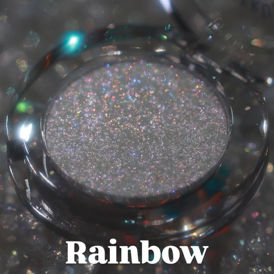 - Rainbow: An iridescent base full of blue, purple, red and pink sparkles. Cooler-toned and shifty.