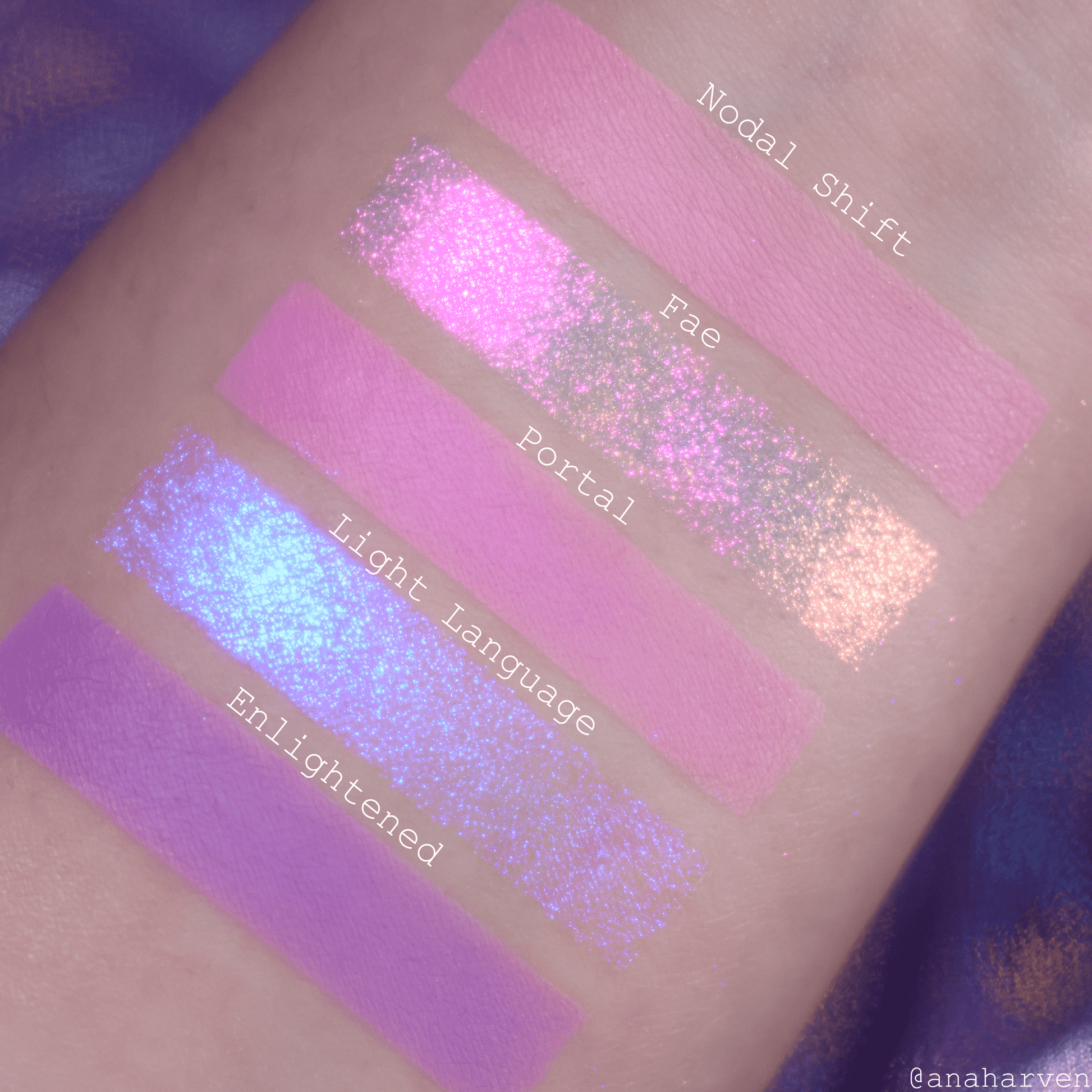 Every shade is a whisper from the ancient worlds, and every hue is a tribute to the starseed within. The palette features dreamy multichromes, magical holochromes, shimmery duochromes and velvety mattes for celestial looks.
