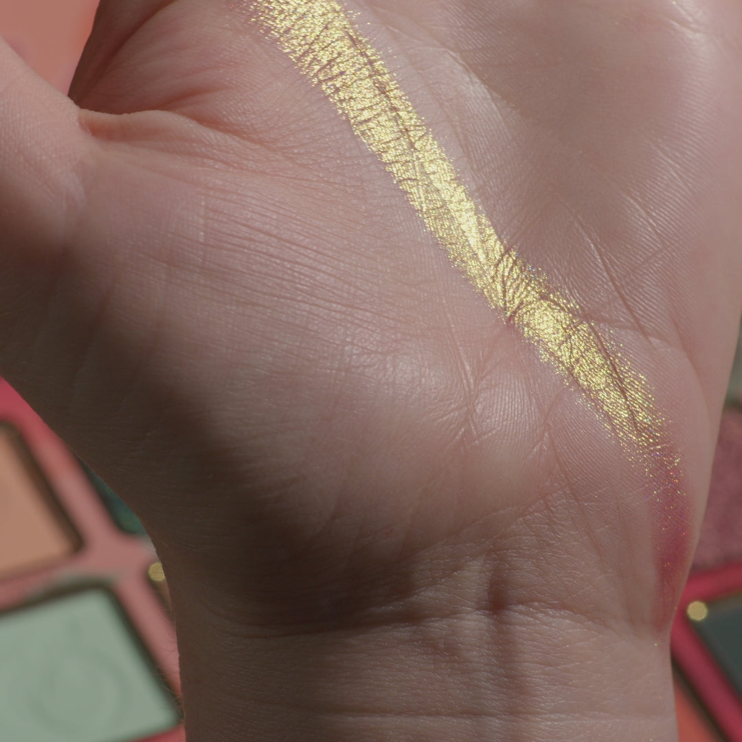 The perfect palette for everyday looks, with peachy and complementary hues, includes two duochromes, one multicohrome, one rainbow-shifting holochrome, one satin and ten mattes.