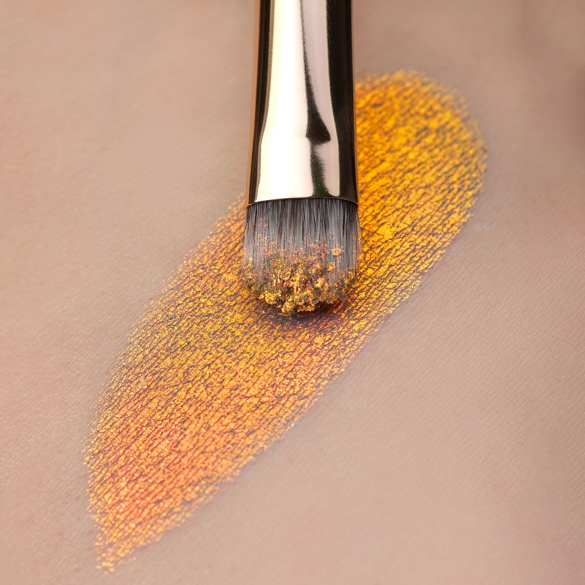 Super-fine loose eyeshadows with a gold base and a glimmering, colour-changing finish, designed to complement all skin tones. They shift from warm orange to radiant gold, to deep red, and to rich bronze.