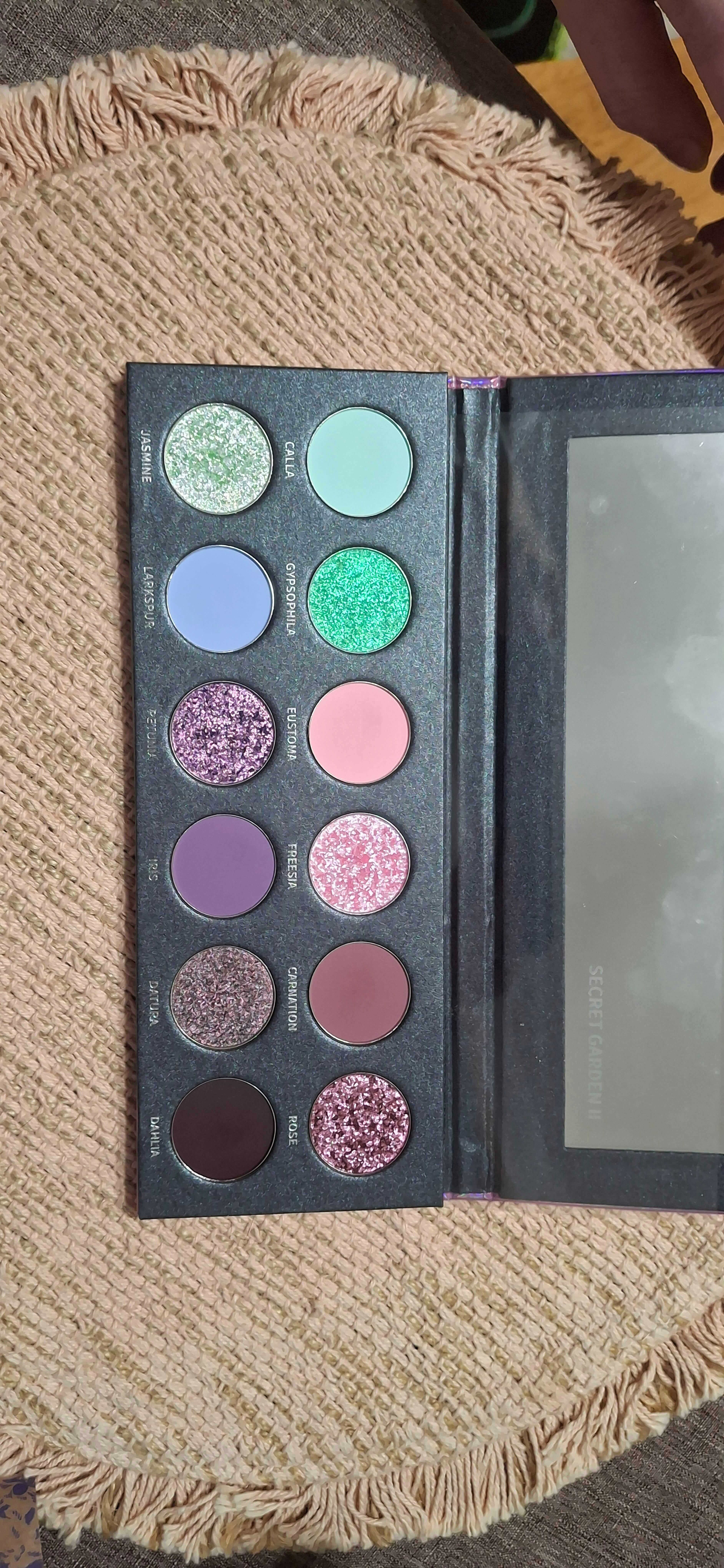 The packaging is great. Also the shade satura has Holo particles in it which adds beautiful dimension to the shadow. My favourite shade though is gypsophila, I've never seen anything like it and it beams the most beautiful green. It's so vibrant it practically glows. I'm excited to keep playing with it. (Only 4 stars though because the shimmers crease and the freesia is squishy).