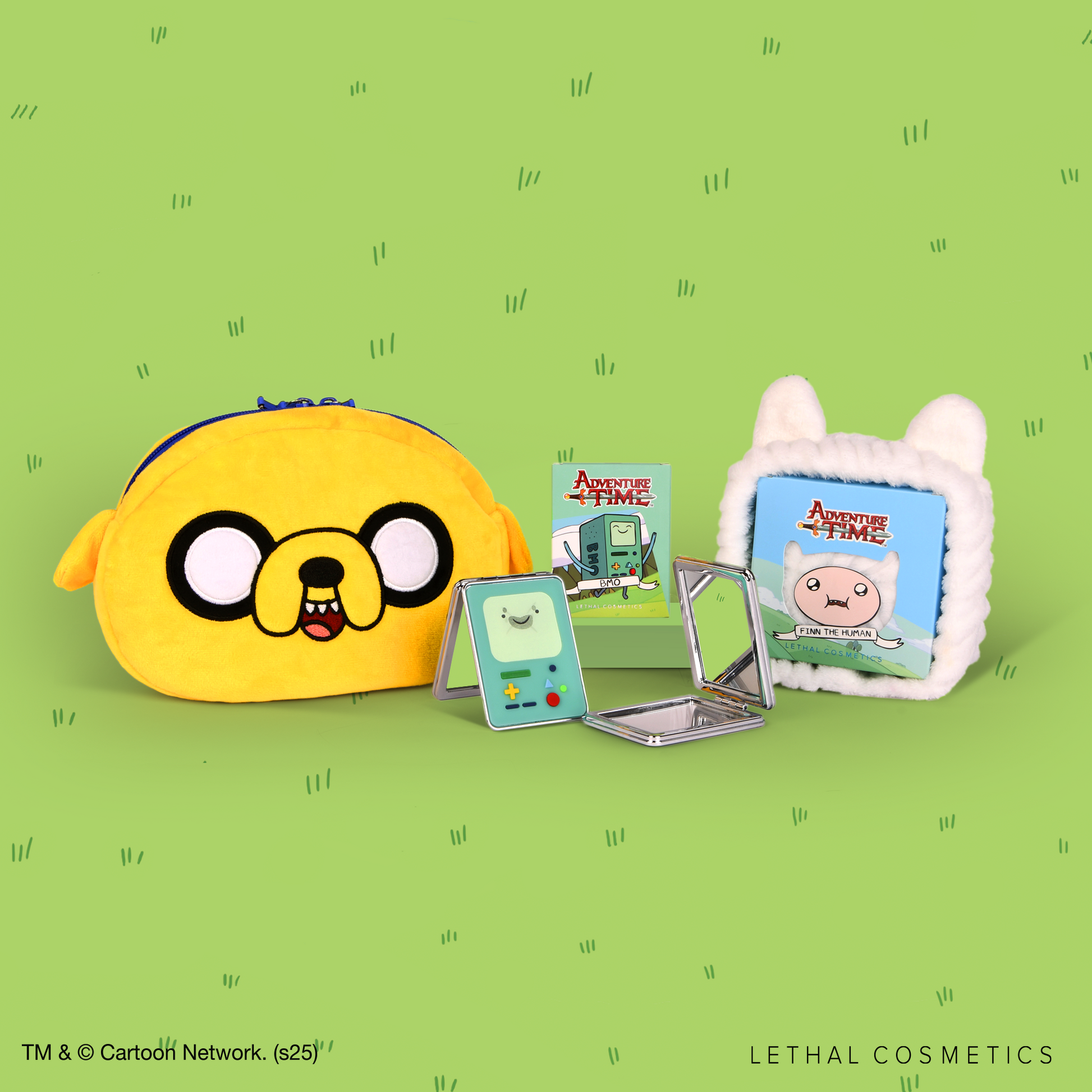 Available individually: Jake makeup bag, Finn the Human headband, and BMO pocket mirror
