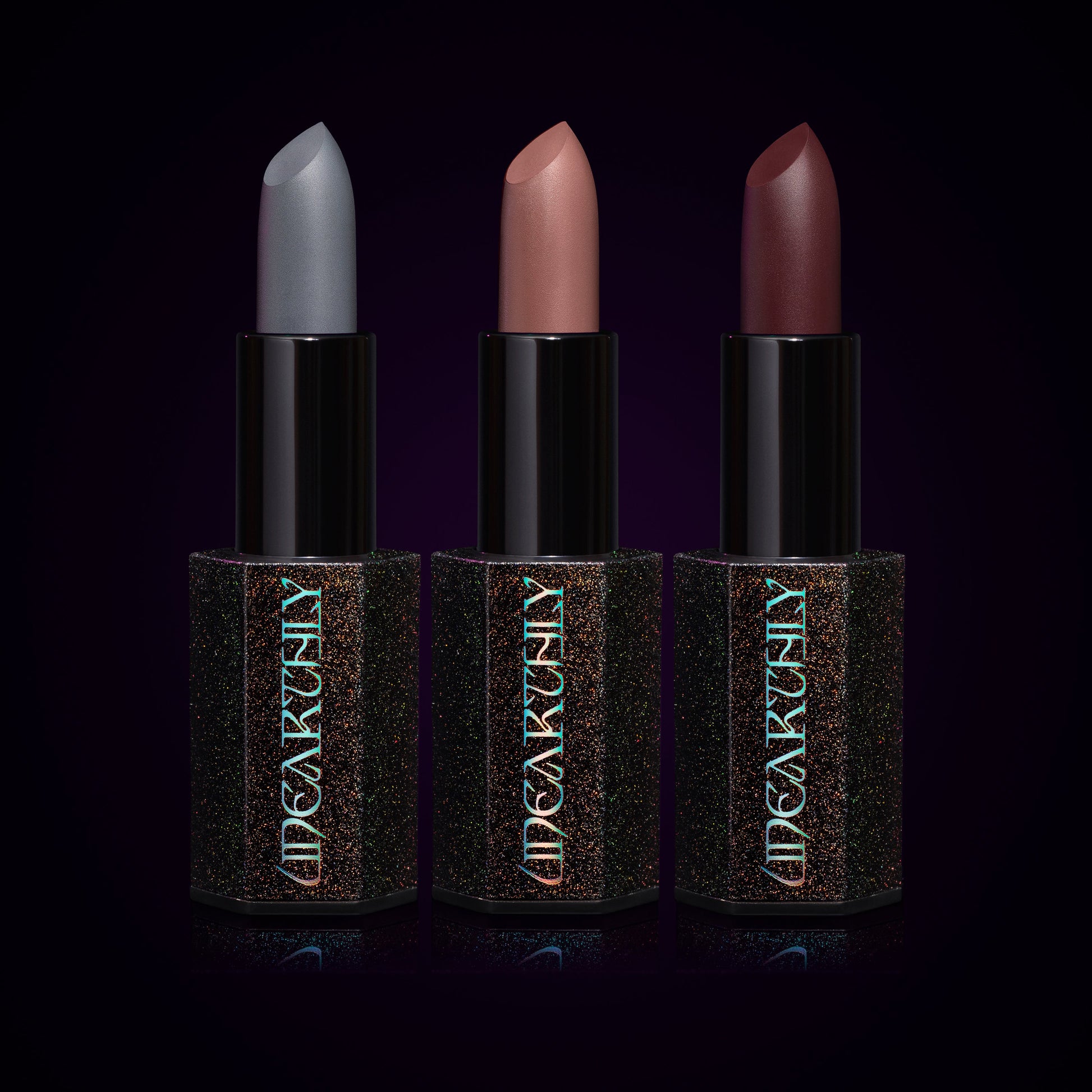 All three shades of creamy lipsticks created in collaboration with the artist Courtney Quarantine.