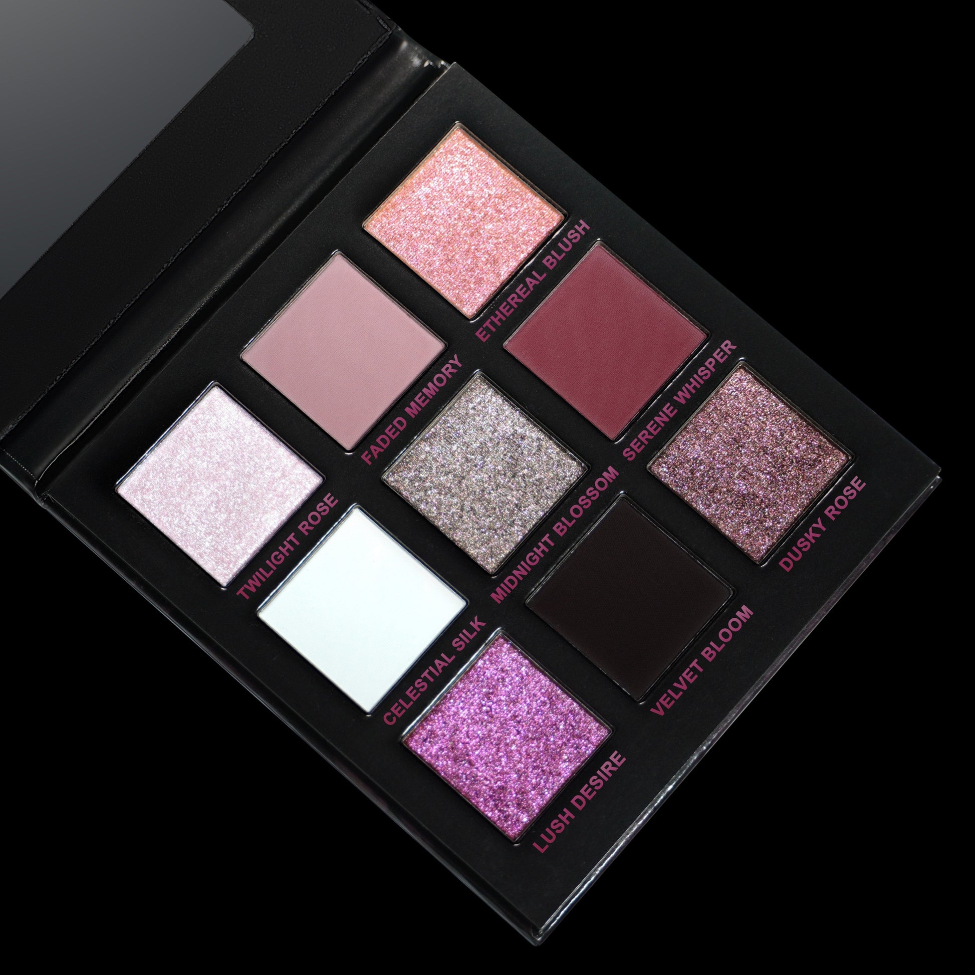 Ethereal Blush, Celestial Silk, Midnight Blossom, Lush Desire, Dusky Rose (EYESHADOW): Ethylhexyl Palmitate, Octyldodecanol, Synthetic Fluorphlogopite, Isononyl Isononanoate, Talc, Mica, Calcium Aluminum Borosilicate, Silica, Dimethicone, Magnesium Stearate, Nylon-12, Octyldodecyl Stearoyl Stearate, Hydrogenated Polyisobutene, Alumina, Caprylic/Capric Triglyceride, Triethoxycaprylylsilane, Tin Oxide, Phenoxyethanol, Tocopheryl Acetate, Ethylhexylglycerin, Caprylyl Glycol.